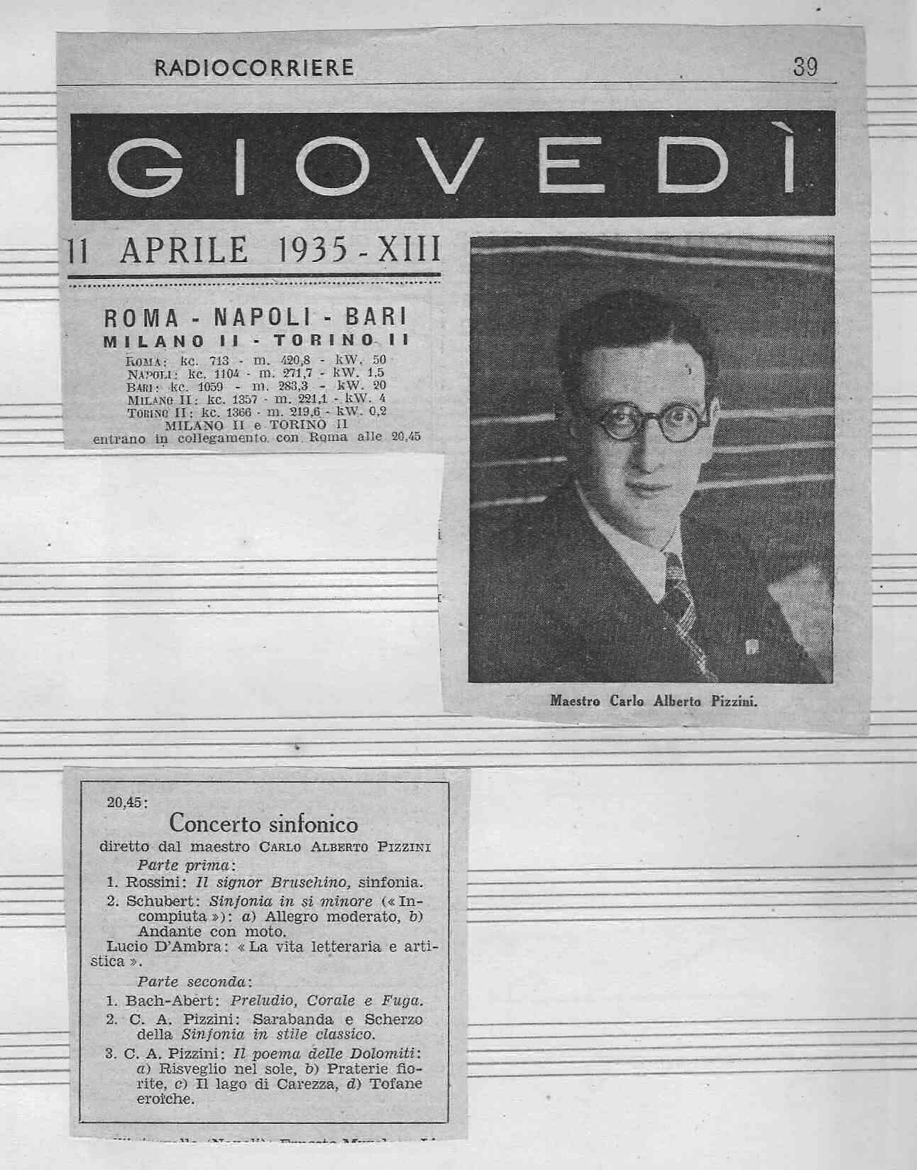 Programma del Concerto Radiofonico (3 Marzo 1939)
