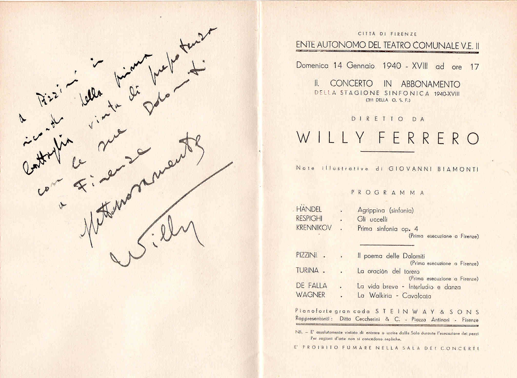 Programma del 14 Gennaio 1940 a Firenze (Autografo di Willy Ferrero)