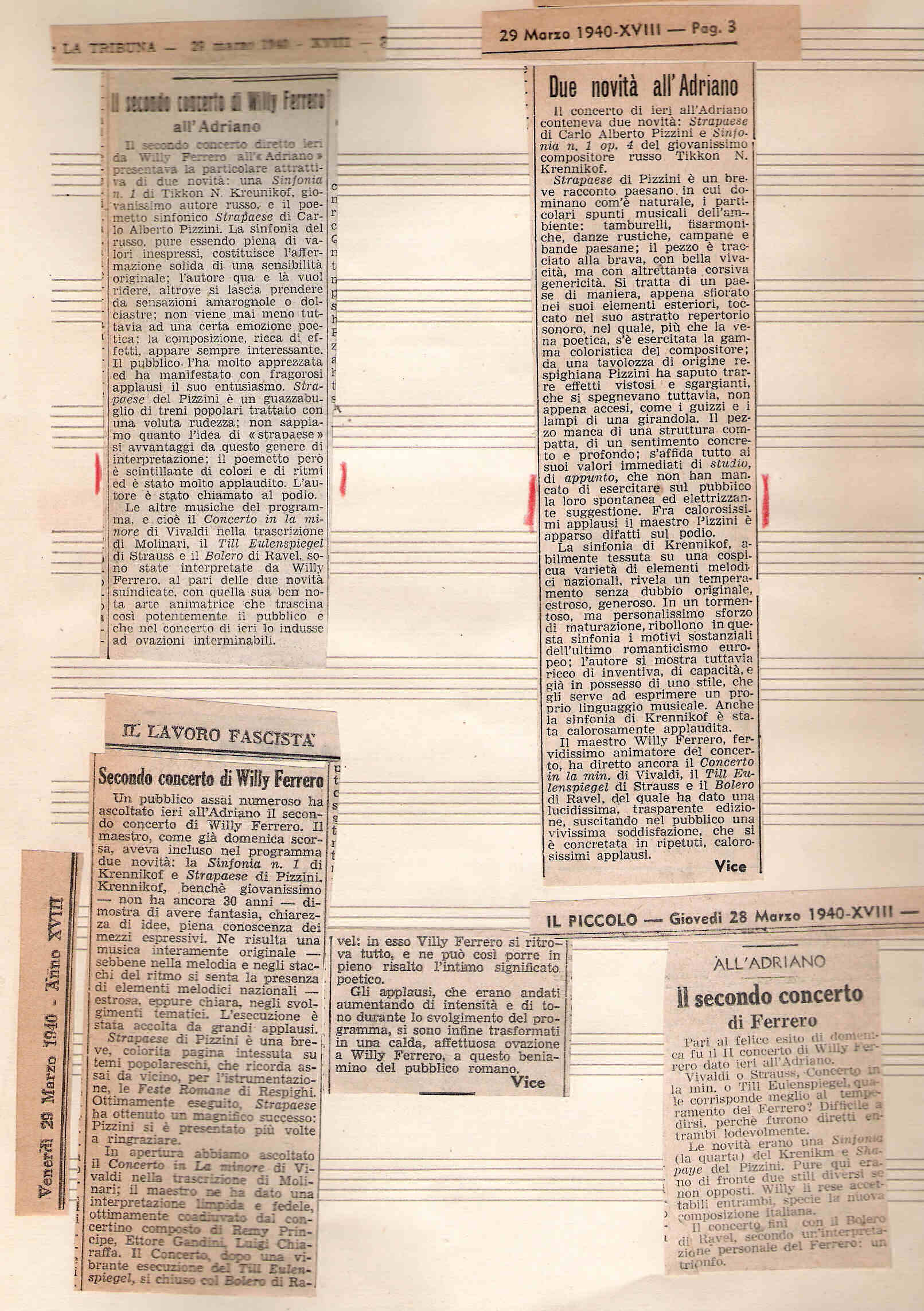 Roma Teatro Adriano Concerto del 10 Marzo 1940