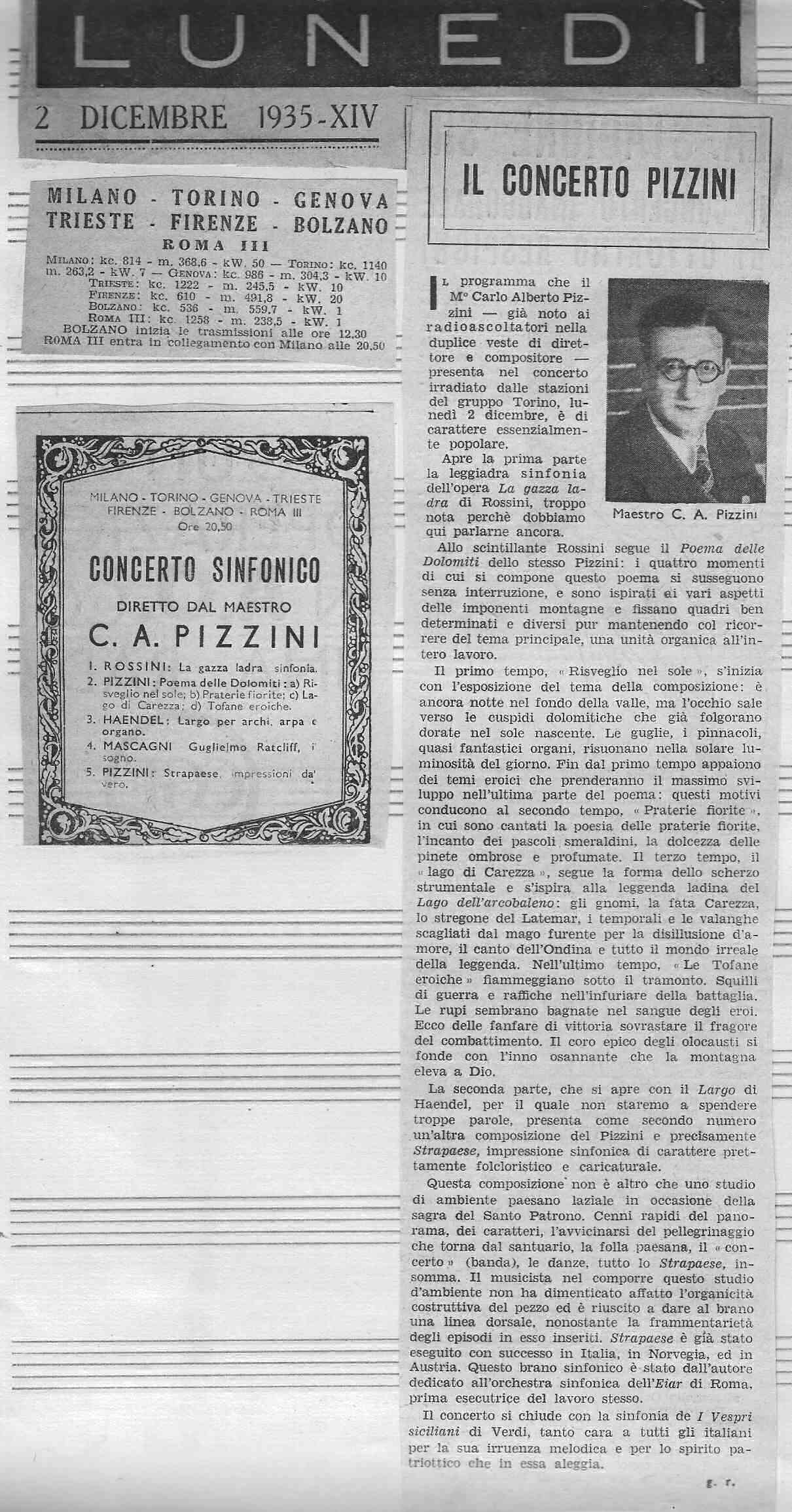 Programma del Concerto Radiofonico (3 Marzo 1939)