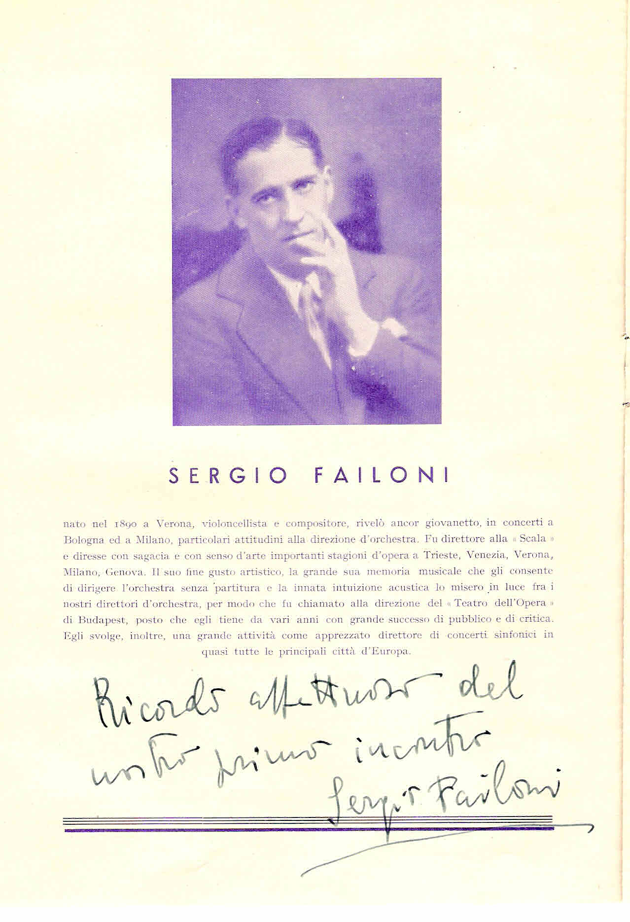 Autografo di Sergio Failoni (3 Marzo 1939)