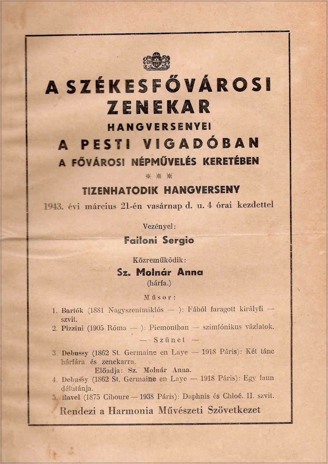 Concerto diretto da Sergio Failoni a Budapest il 21 Marzo 1943