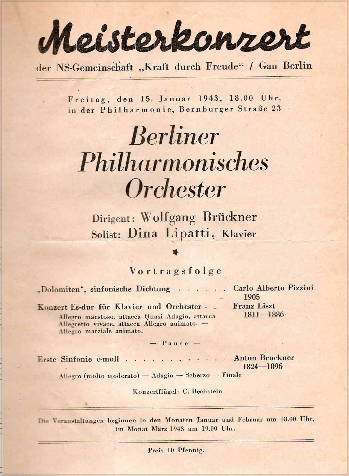 Orch.Filarm.di Berlino diretta da Wolfgang Bruckner (15 Gennaio 1943)